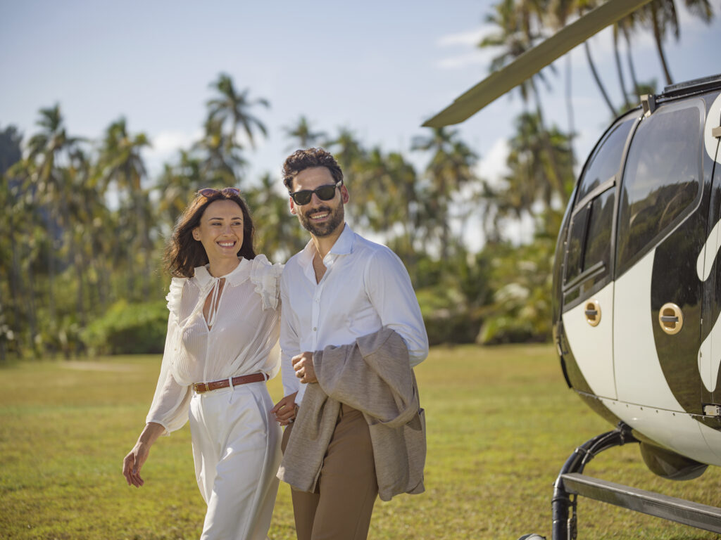 Flyv til øen i helikopter fra Mahé til North Island. Uberørte strande, tropiske palmer, gigantiske granit klipper – et sandt paradis. Filosofien bag North Island er at bringe naturen ind i det oprindelige og det er lykkes med bravur. Med 11 private villaer på hver 450 m2, og en noget større villa på 750m2, opleves en uovertruffen følelse af eksklusivitet og luksus.