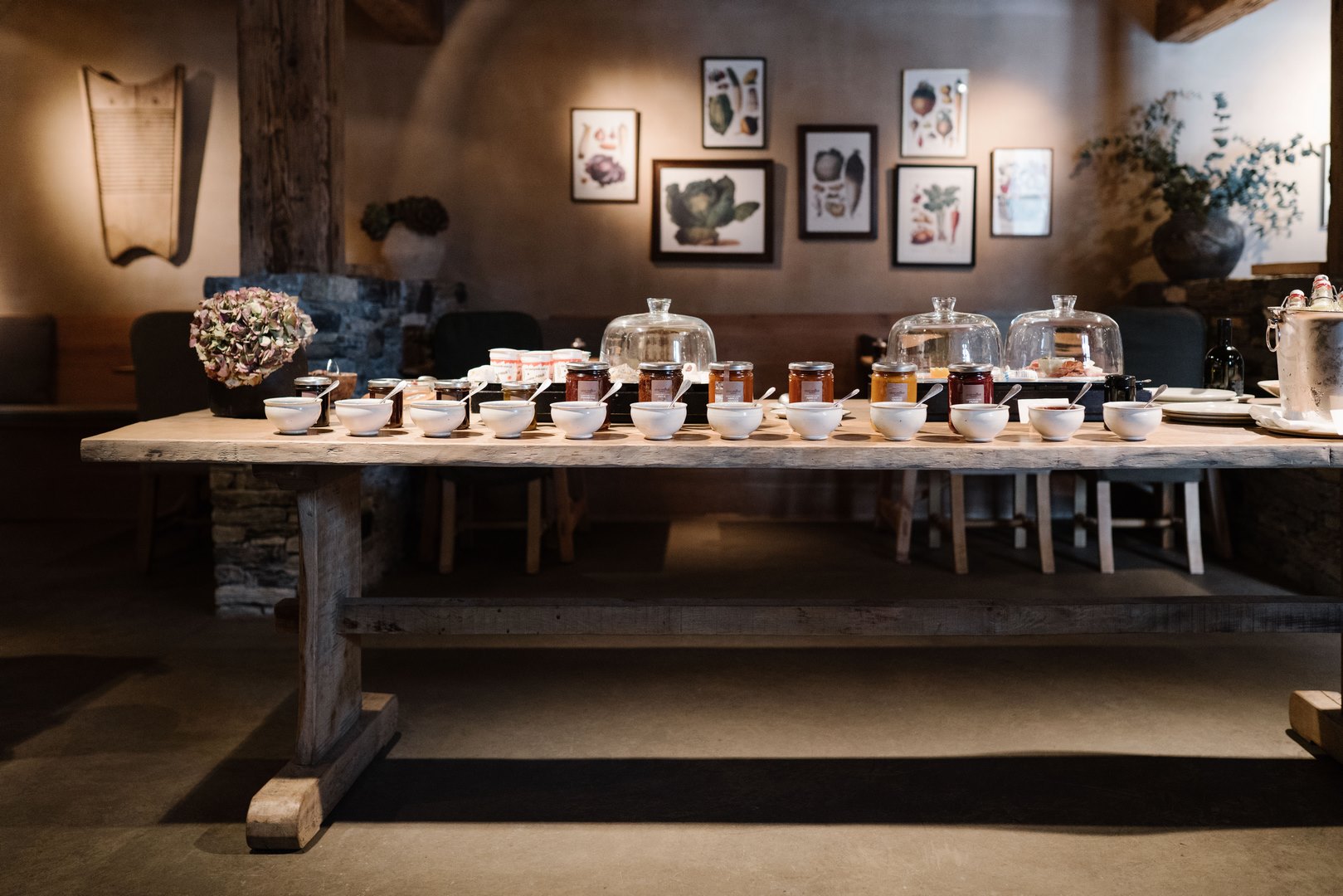 Alle suiterne er rummelige og udstyret med balkon eller terrasse, hvor du kan nyde den betagende udsigt over bjergene og den charmerende landsby. De elegante værelser har king-size senge, hyggelige opholdsområder (de fleste med pejs) og hjørnekontorer – alt designet med komfort og luksus for øje.