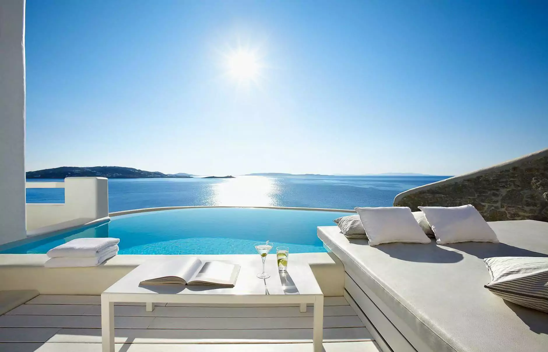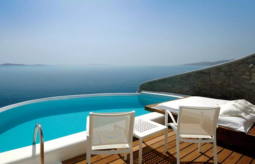 Cavo Tagoo er et unikt luksus hotel, som ligger tæt på Chora, hovedbyen på den underskønne ø Mykonos. Hotellet er bygget op ad en klippeside og har et pust af boheme og respekt for omgivelsernes elementer.