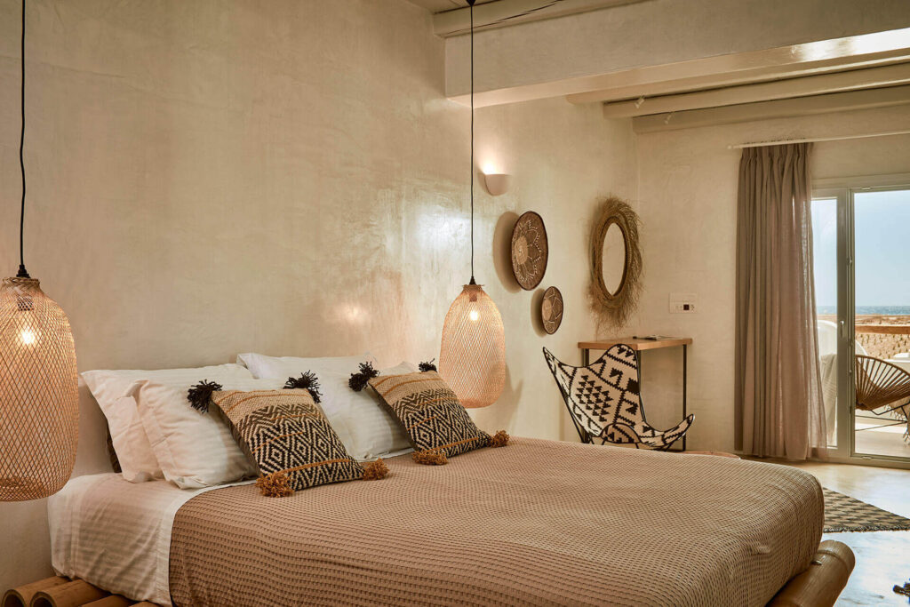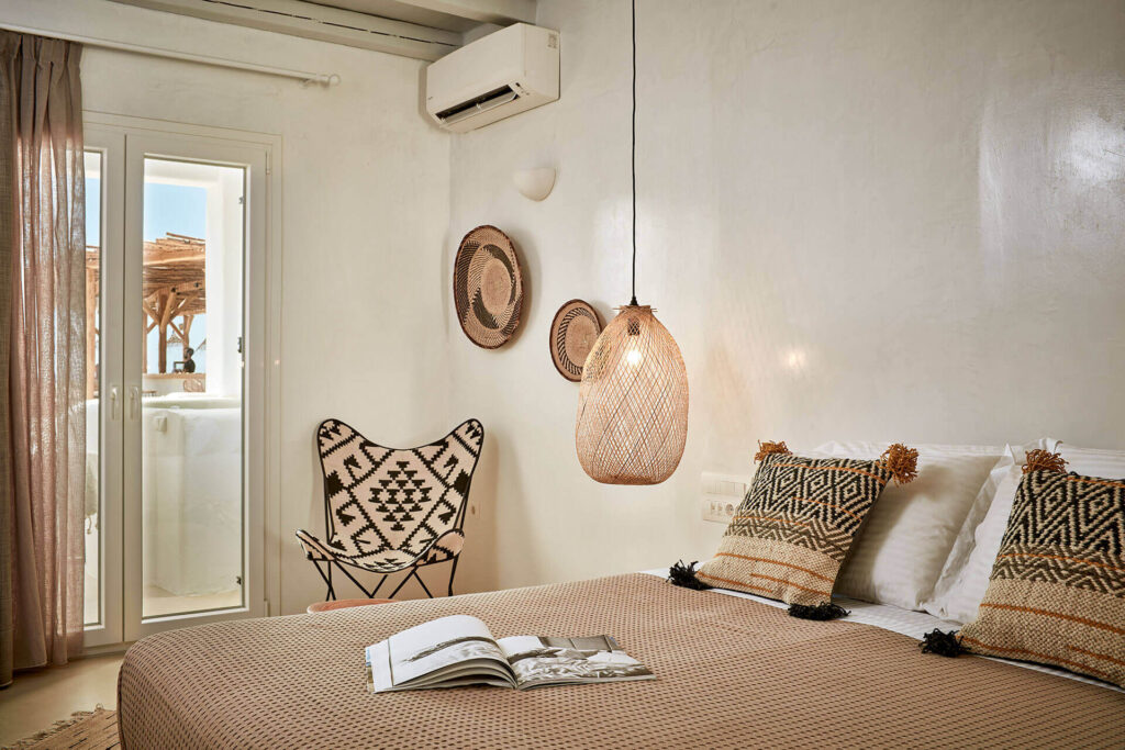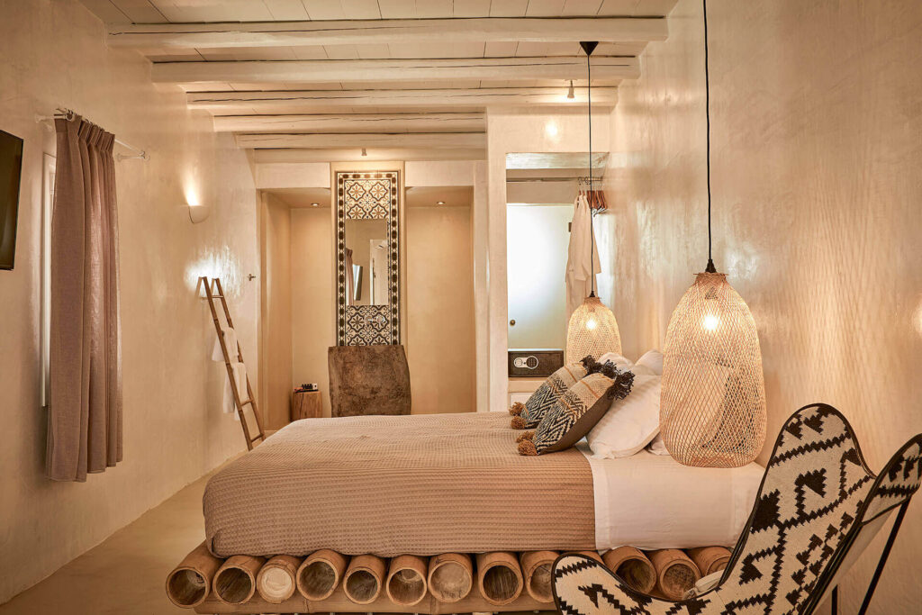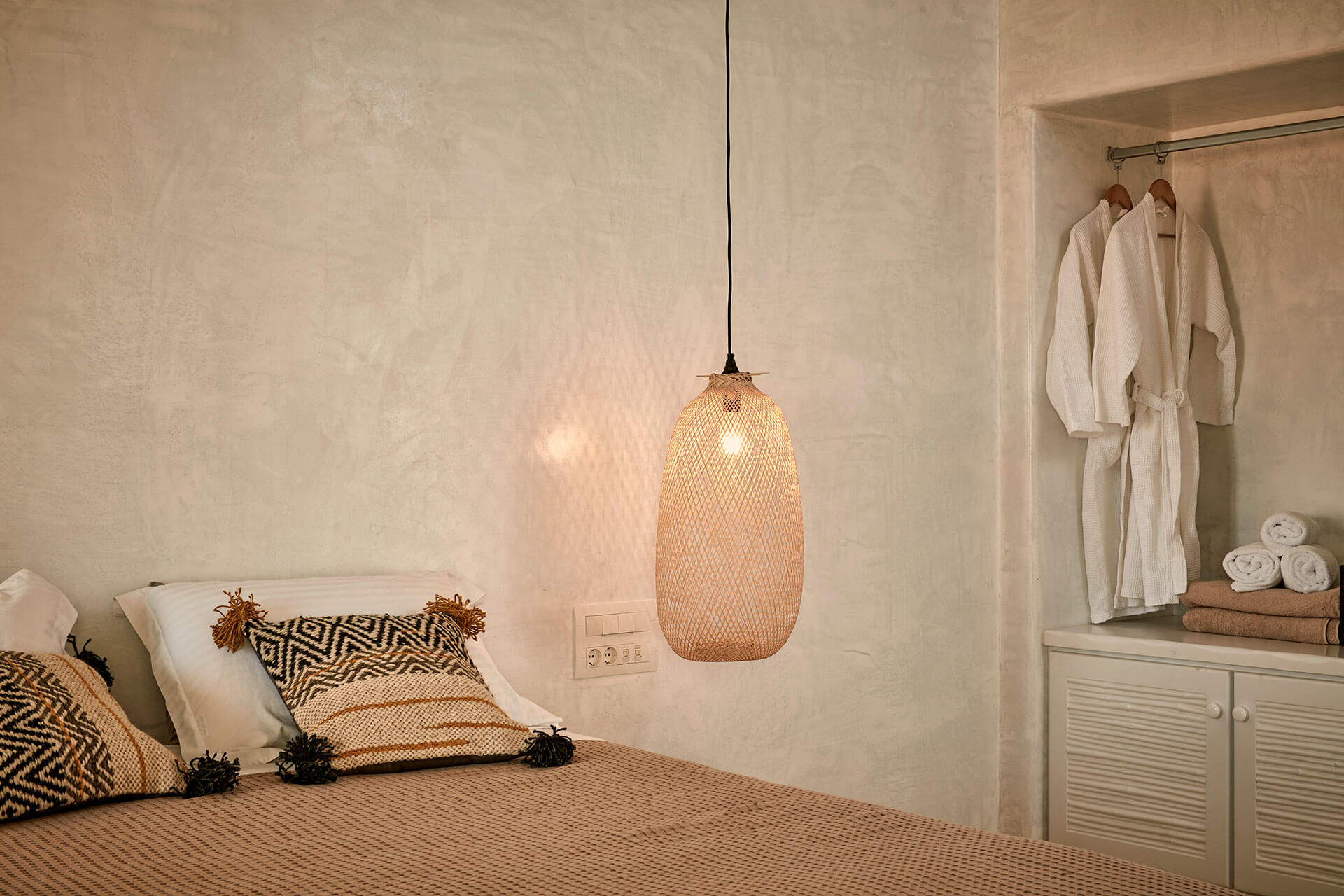 Du bliver forelsket i den diskrete luksus – hvor enkelte detalje er tænkt over. Alt er let og stilfuldt indrettet og suiterne er specielle: med luksus sengetøj, allergivenlige madrasser, stilfulde minimalistiske møbler, smukke badeværelser med et kyklade-touch, eksklusive toiletartikler og en mini-bar. For den ultimative afslapning har hvert værelse enten et indendørs eller udendørs Jet-badekar, så du bare kan læne dig tilbage og slappe af med et glas god vin med din betydelige anden.