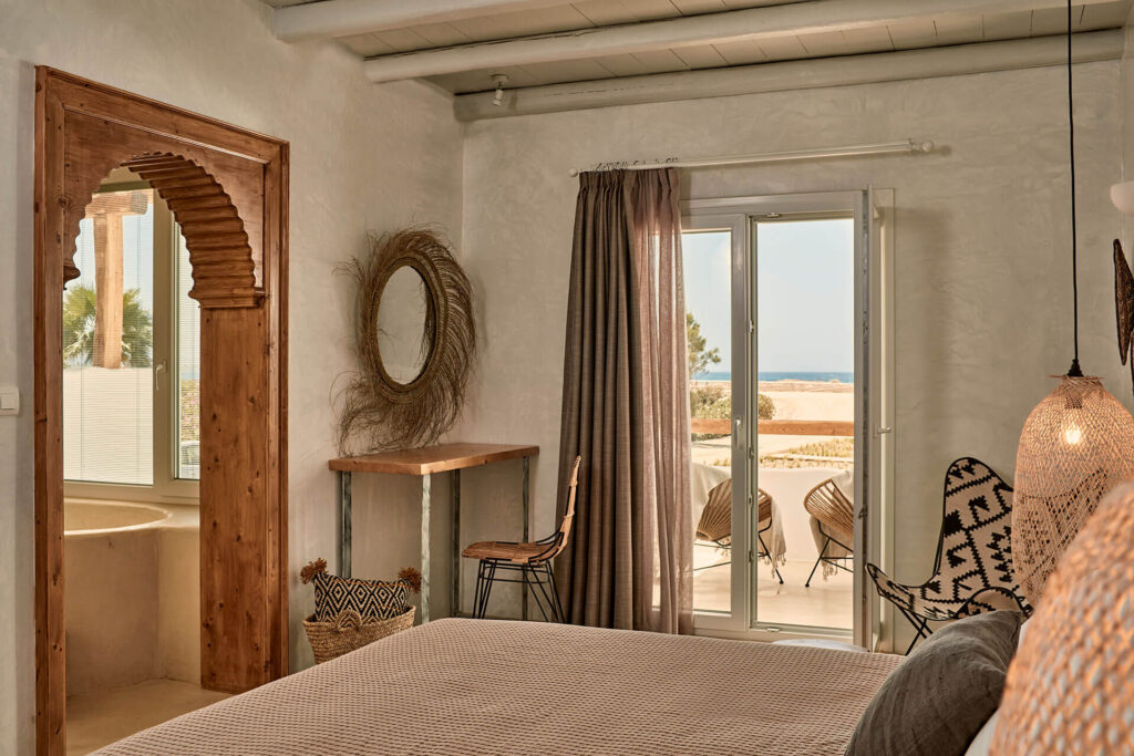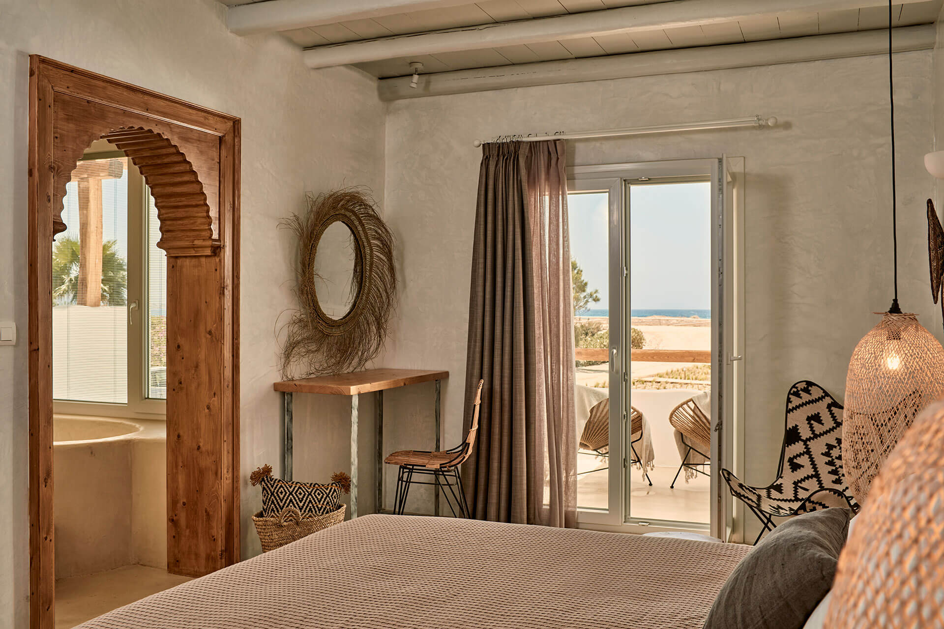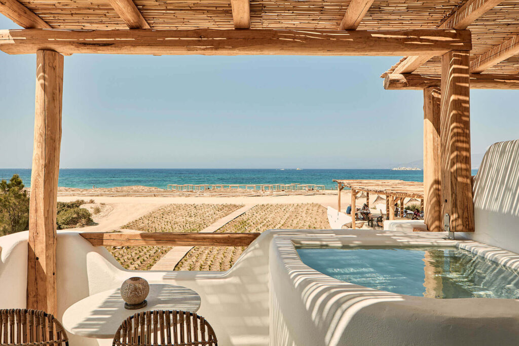 På Naxian on The Beach, møder boheme – luksus i disse 10 smukke suiter, med kun få meter til stranden. Plaka Beach er muligvis er en de bedste strande på Naxos, et eksklusivt område med egne solsenge. Naxian on the Beach blev bygget med kærlighed og opmærksomhed på detaljer af den samme familie, der ejer Naxian Collection, og uden tvivl en af de bedste beliggenheder i Kykladerne. Oplev morgenmad på sengen, middage ved strandbaren i solnedgang og et afslappet miljø med boho-chic atmosfære, der bare er perfekt til par, der søger en strandferie af høj kvalitet.