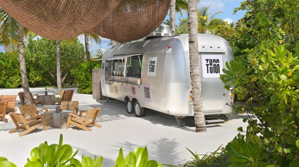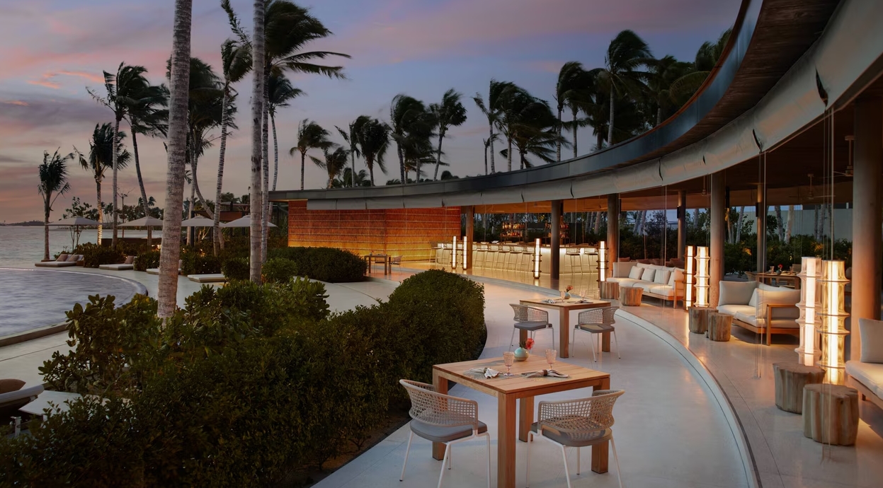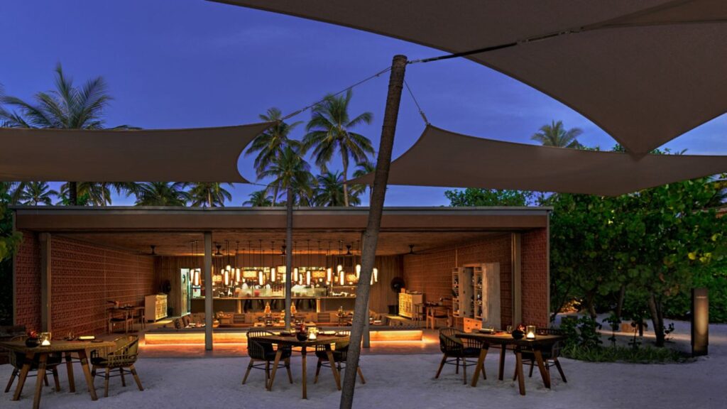 På den midterste ø ligger de fleste restauranter – enkelte restauranter ligger også på søster øen Patina, 7 minutters sejlads fra resortet. På den sidste ø ligger der også strand villaer og så kan man herfra gå eller cykle ud til spa´et. Der er cykler til alle villaerne.