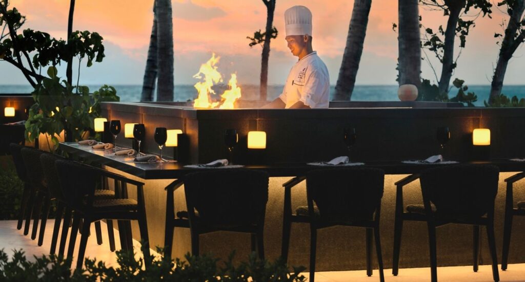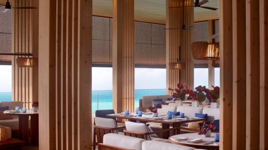 Restauranterne på The Ritz Carlton Maldiverne oser af elegance – maden er meget varieret og delikat. Drik en italiensk espresso, hyg jer over kantonesisk tapas eller sushi. Nyd den smukke solnedgang med et afkølet glas rosé og smag nogle af de fantastiske fiskeretter på de syv restauranter og barer.