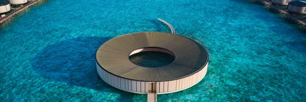 Det smukke spa ligger i midten af alle vand villaerne og er også rundt.