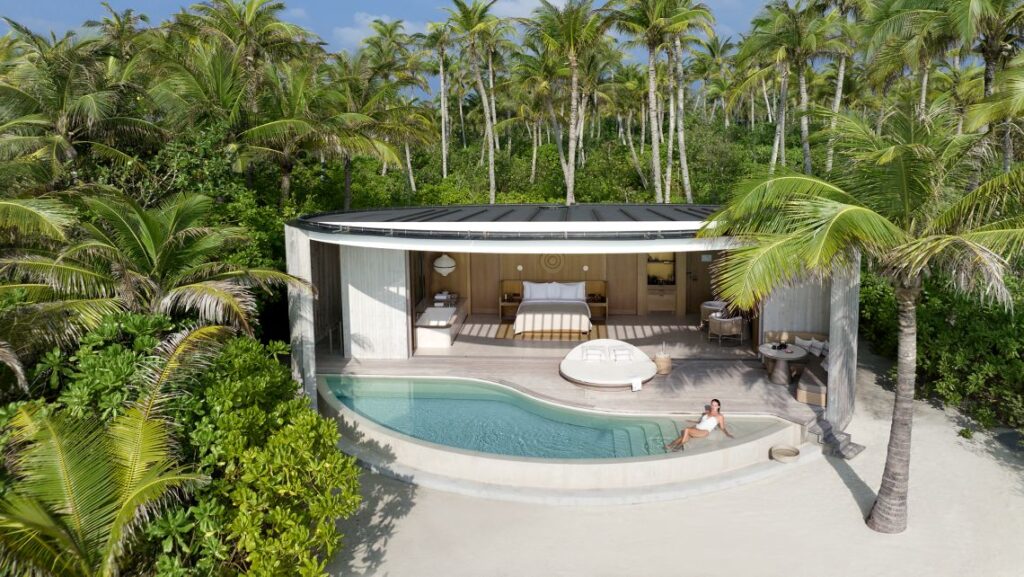 Resortets moderne design-villaer ligger direkte på de hvide sandstrande eller står på pæle ude i havet. De smukke villaer er fra 150 m2 som den mindste til 1.500 m2 som den største! Alle villaer er designet med det ultimative inden for luksus, som der definerer Ritz-Carlton-navnet verden over. Hver villa har panoramaudsigt over havet og er udstyret med privat pool og overdækkede solterrasse. Alle villaer er runde i formen – overalt på resortet går den runde form igen.
