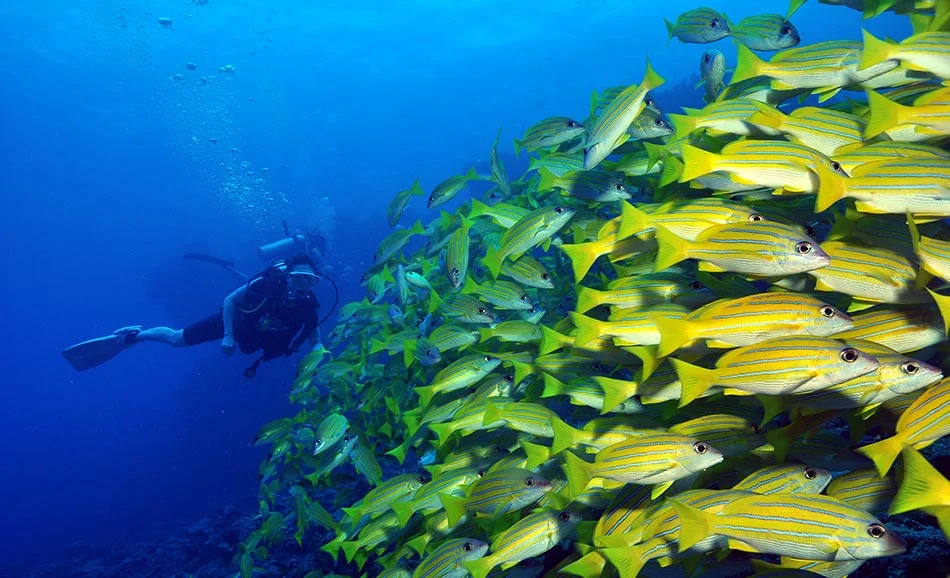 Husrevet ligger udenfor ved stranden og her støder du ind i alle de fisk og andre havdyr vi kender fra den Nemo filmen. Det er det absolutte highlight for mange at dykke eller snorkle med djævle rokker, og det kan du opleve på en tur kun 20 minutters sejlads fra resortet. Opleves i juli og august – hvor der er også er hvalhajer i området.